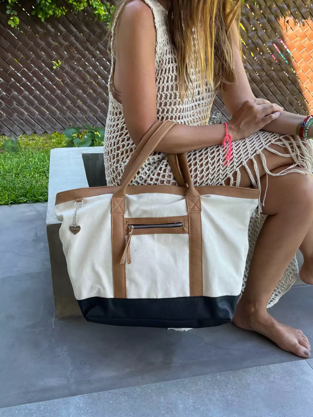 Interior forrado, multiples bolsillos, mosqueton para las llaves