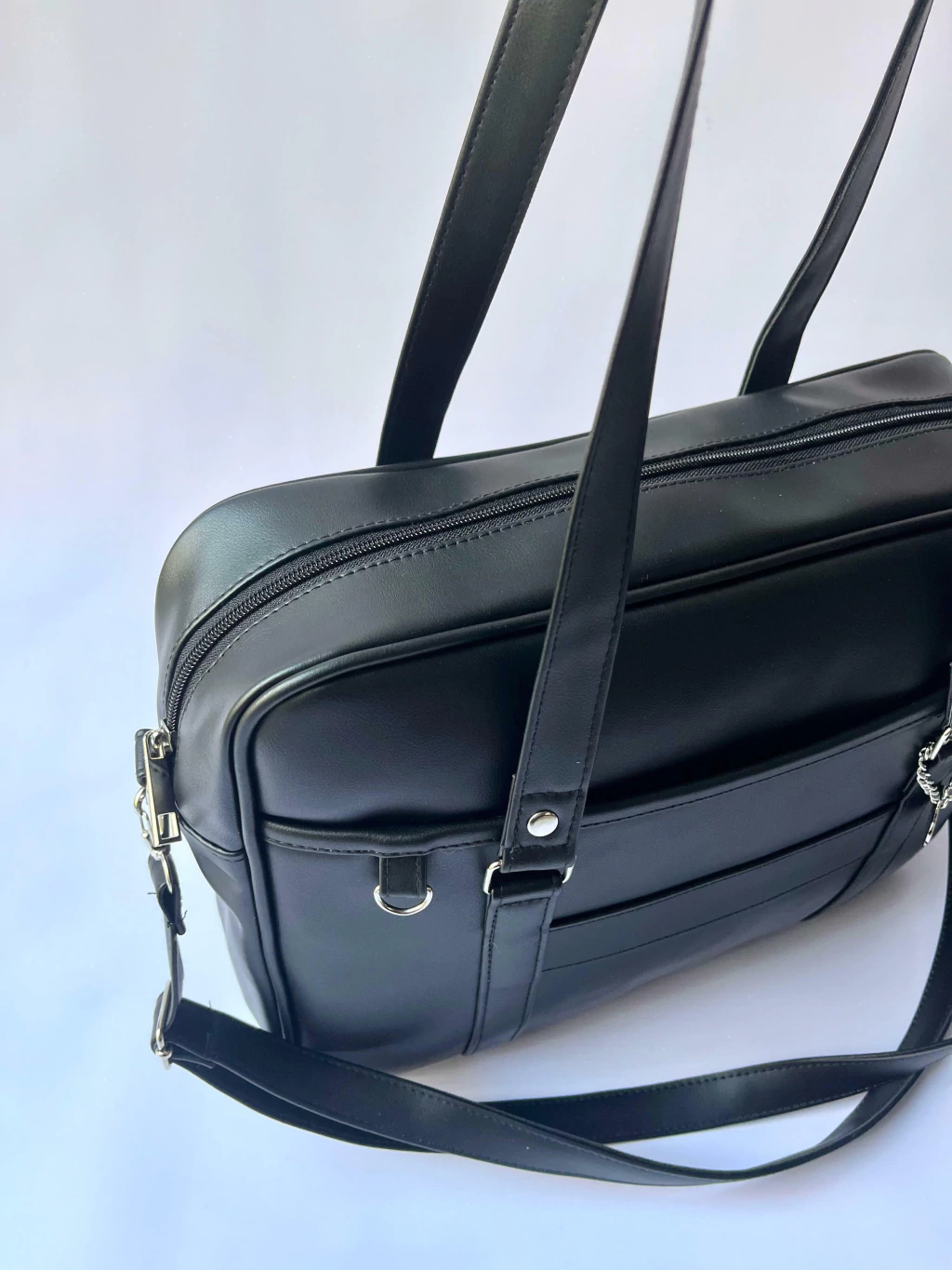 Manijas negras en simil cuero largas y reforzada para llevar bajo hombro (aprox 0,65cm)