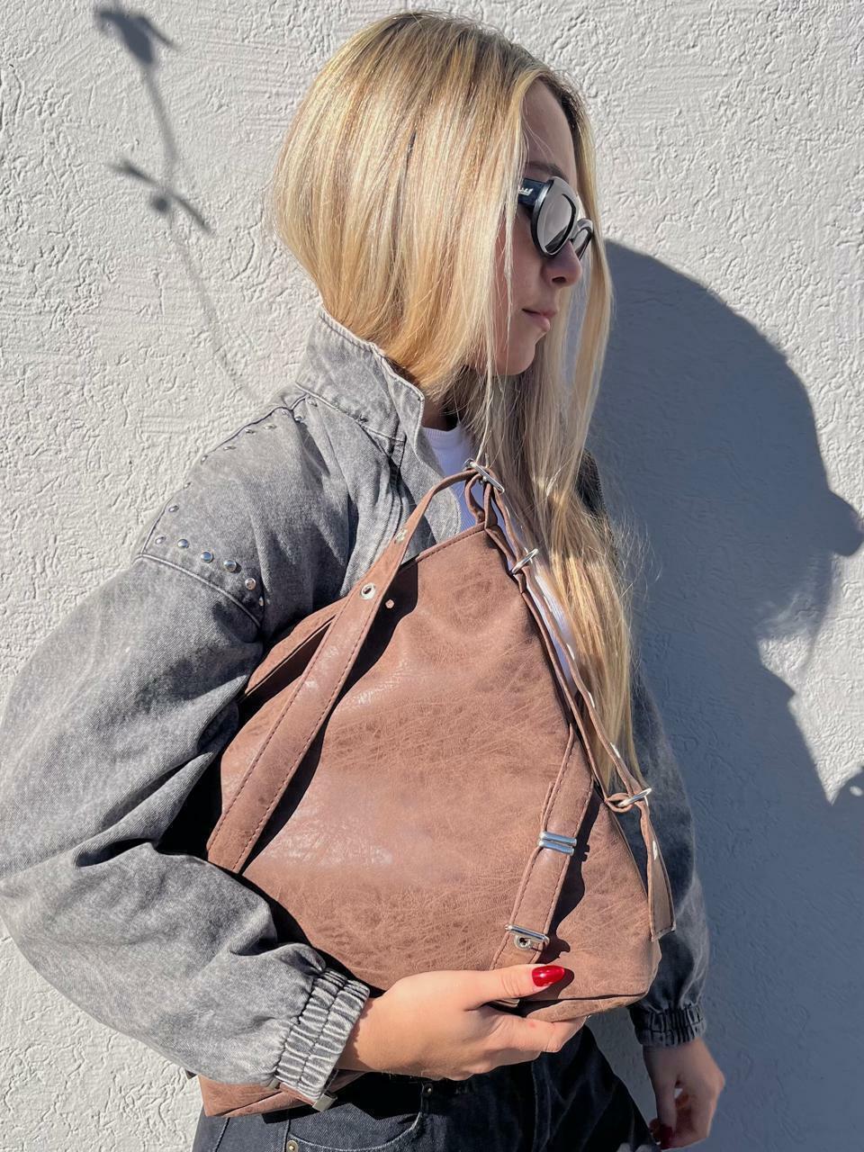 Tira larga con hojalillos regulables para colgar al hombro, cruzar o llevar en la mano (medida aprox min 0,72cm | max 1,43cm)