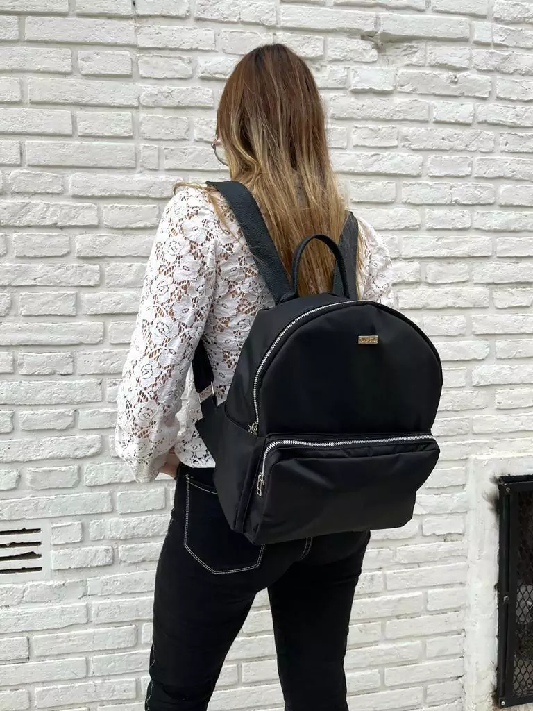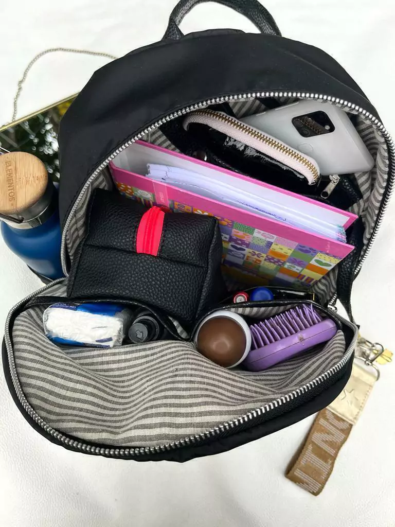 Interior forrado con variedad de bolsillos con o sin cierre, elastico para sostener la botellita